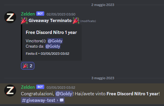 Mantieni attivo il tuo Server Discord creando dei Giveaway, dai la possibilità di guadagnare qualcosa tramite essi! Crea ora un Giveaway tramite il comando /giveaway start, per visualizzare tutti i comandi, esegui il comando /helpcommands e recati nella pagina dei Giveaway.