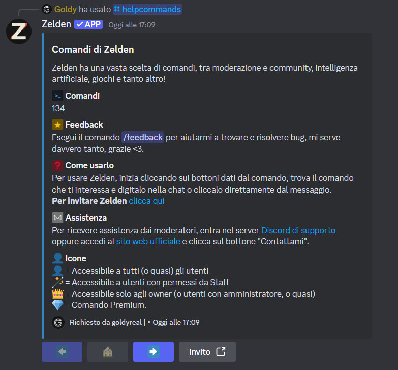 Per aggiungere Zelden al tuo server, clicca sul bottone "Invitami" in cima alla pagina!