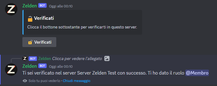 intuitiva. Attivala ora eseguendo il comando /setup verify,
